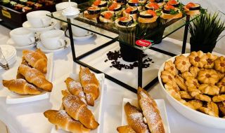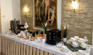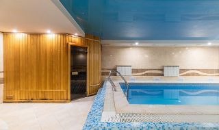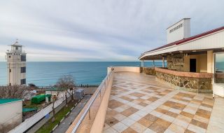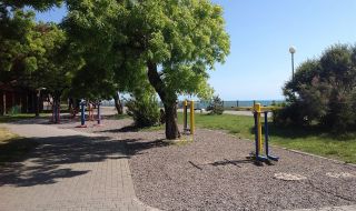 До ближайшего спуска к городскому галечному пляжу – около 400 метров. Он оборудован навесами, солнцезащитными зонтами, лежаками и шезлонгами.